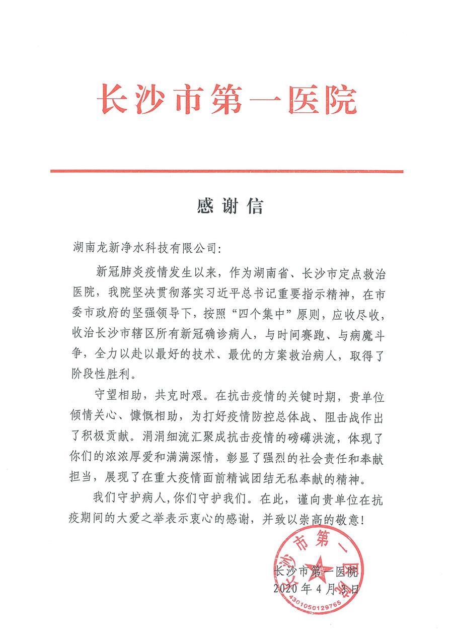關(guān)于龍新疫情期間,龍新凈水科技作為醫(yī)院中央純水系統(tǒng)解決方案公司,充分發(fā)揮專業(yè)優(yōu)勢,勇?lián)鐣?zé)任,同安吉爾公司合力向長沙市第一醫(yī)院捐贈一批水設(shè)備用來解決全院飲水問題。以實際行動詮釋了同舟共濟、共克時艱的社會責(zé)任和擔(dān)當(dāng)。