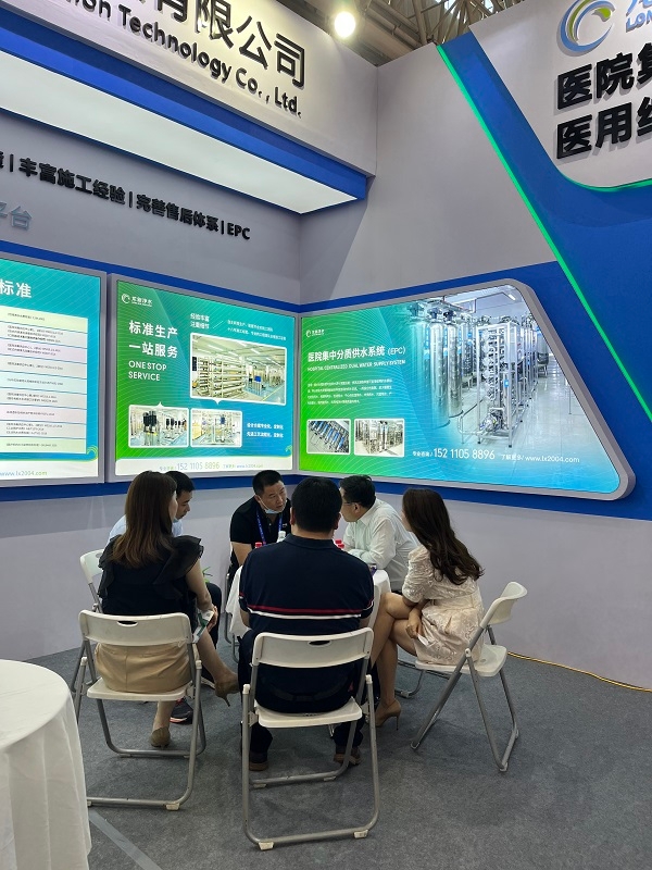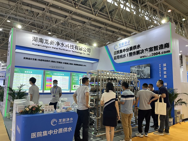 龍新凈水以創(chuàng)新為公司發(fā)展源動力,在醫(yī)用純水領(lǐng)域始終推陳出新,為美好醫(yī)院建設(shè)及高質(zhì)量發(fā)展推波助瀾。前來龍新展位參觀洽談的觀眾熙來攘往,龍新凈水的“醫(yī)院集中分質(zhì)供水系統(tǒng)”吸引了眾多參展者前來了解,該系統(tǒng)解決了以往醫(yī)院各科室純水單獨供應(yīng)的現(xiàn)狀,具備降耗減排、節(jié)省人力空間、智能監(jiān)控、維護便捷等一系列優(yōu)勢,為醫(yī)院的持續(xù)發(fā)展和高效管理奠定了基礎(chǔ)。
