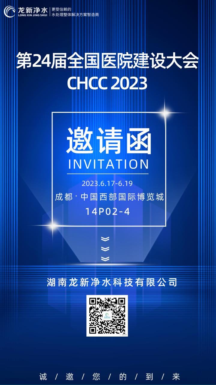 我們非常榮幸的邀請(qǐng)您參加于2023年6月17-19日在中國(guó)成都·中國(guó)西部國(guó)際博覽城舉辦的“第24屆全國(guó)醫(yī)院建設(shè)大會(huì)”,龍新凈水將攜醫(yī)用純水系統(tǒng)與您會(huì)面,期待您的到來(lái)!