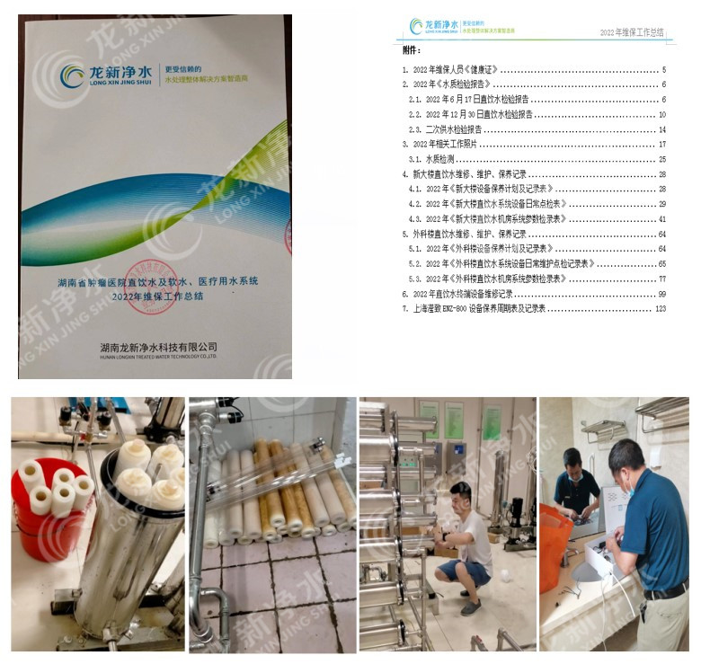 ◆行業(yè)首家獲得五星商品售后服務(wù)體系認(rèn)證,規(guī)范完善的售后服務(wù)管理辦法,日常點(diǎn)檢記錄、耗材維保記錄、故障維修記錄、水質(zhì)檢驗(yàn)記錄成套成冊(cè)建立用戶檔案。