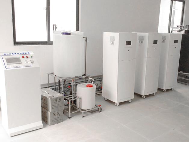 酸性氧化電位水樓宇集中供水整體工程是在大樓頂部或設(shè)備層專設(shè)設(shè)備間,安裝一套或多套制作酸化水的生成器。形成一路兩臺(tái)或多臺(tái)裝置。連續(xù)生成酸化水,并分別貯存。通過(guò)給排水系統(tǒng)工程管道將酸化水分別輸送到各層的病區(qū)中心護(hù)士站,消毒供應(yīng)中心、內(nèi)鏡室、手術(shù)室、血透室、急診搶救室、感染科、婦產(chǎn)科、兒科、燒傷科等使用終端。廣泛使用樓宇式集中供應(yīng)酸化水整體工程可降低成本,且使用范圍擴(kuò)大,使用頻次增加,使用方便可靠。由于酸化水是環(huán)保產(chǎn)品,不但降低了醫(yī)院污水處理成本,還保障了醫(yī)護(hù)人員和病人的身體健康,從而遠(yuǎn)離了醫(yī)院常有的福爾馬林等刺鼻味道。
